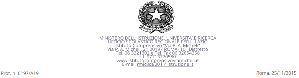 Eletti i seguenti rappresentai nel Consiglio di Istituto dell'I.C. "Via P.A. Micheli" di Roma, per il triennio 2015/2016,2016/2017,2017/2018
